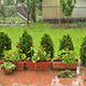 Sound of a hard rain is falling in a garden or somewhere else outside (on the street).