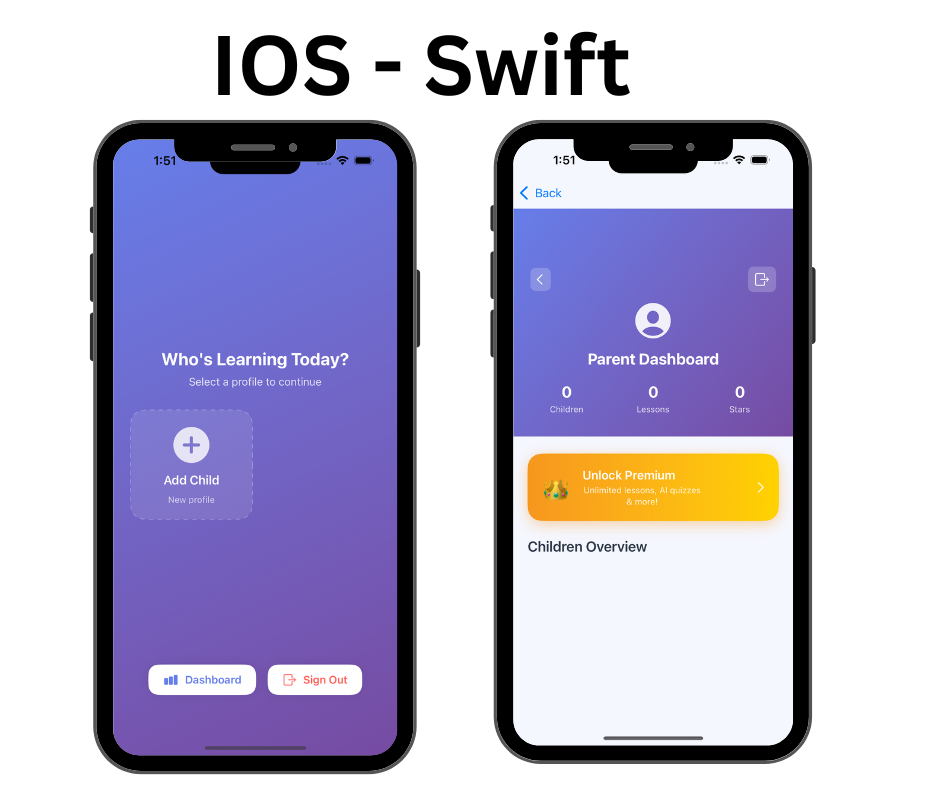 - Swift & SwiftUI (iOS Development) – Native iPhone & iPad applications